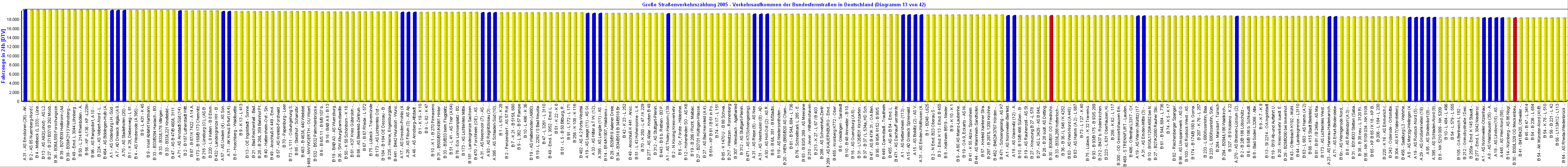 Verkehrsaufkommen der Bundesstraßenabschnitte im Bundesverkehrswegeplan der Bundesrepublik Deutschland nach täglichem Verkehrsaufkommen (PDF, Bericht 13, 438 Seiten, 3,88 MB) Enthält nur alle Bundesstraßen, die von Maßnahmen im Bundesverkehrswegeplan betroffen sind. In einem ersten Teil wird das normale durchschnittliche, tägliche Verkehrsaufkommen dieser Abschnitte behandelt und in Belastungstypen aufgeteilt dargestellt. Der zweite Teil besteht aus mehreren Tabellen, in der Strecken nach Einstufung im Bundesverkehrswegeplan, Rang und Gesamtverkehrsaufkommen absteigend aufgeführt sind. Also, Strecken mit der stärksten Belastung zuerst.