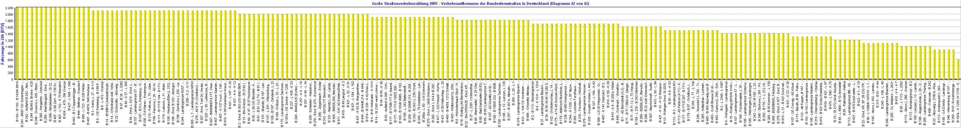 Zählung im Jahr 2005: Vergleich der Verkehrsbelastung der B 30 mit allen Bundesfernstraßen in Deutschland